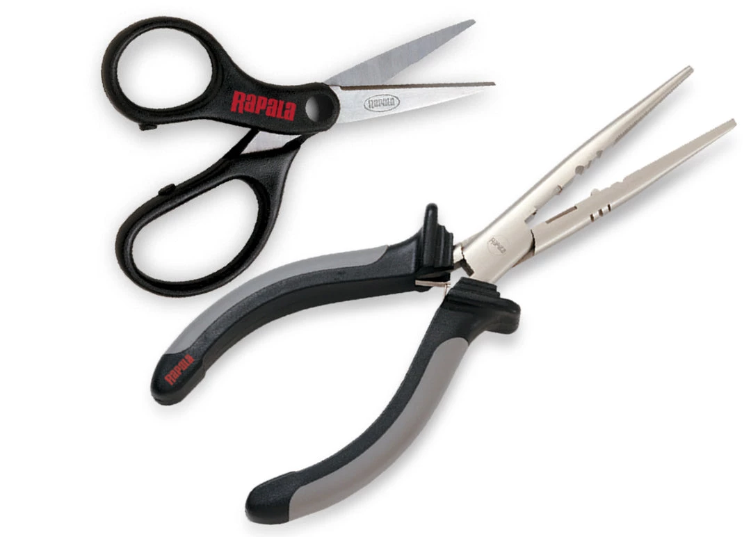 Pliers & Super Line Scissors Combo features the Rapala Fisherman’s Pliers, designed for years of reliable service, they are made of durable carbon steel with a nickel plated finish. Co-molded grips for comfort with a double leaf spring for ease of use and convenience. Split shot crimper, Rapala® lure tuning tool and light duty side cutters are also featured plus the Super Line Scissors that feature sharp serrated cutting edge and oversized finger and thumb holes, these scissors actually grip and hold braided line for easy non-slip cutting.