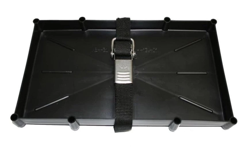 The TH Marine Battery Holder Tray offers safety and security, by keeping your boat’s batteries firmly stowed and preventing contact with carpeting or bilge. Injection moulded with the purest of polypropylene plastic for maximum strength and chemical integrity. All TH Marine Battery Holder Tray comes with a nylon battery strap with stainless buckle.