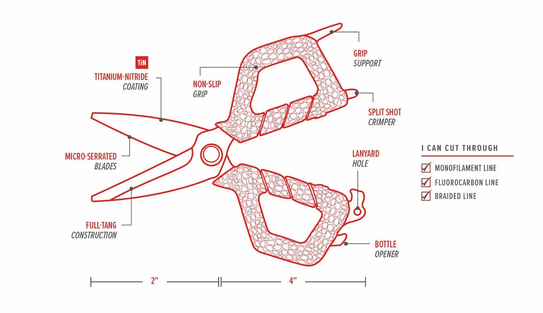 The Bubba Small Shears are multi-functional, lightweight and durable. They are engineered to cut monofilament, fluorocarbon or braided line with ease. The Small Shears are also equipped with Bubba’s iconic, non-slip grip handles, a split shot crimp tool, bottle opener and lanyard hole. Although they may be small, these shears sure are mighty.