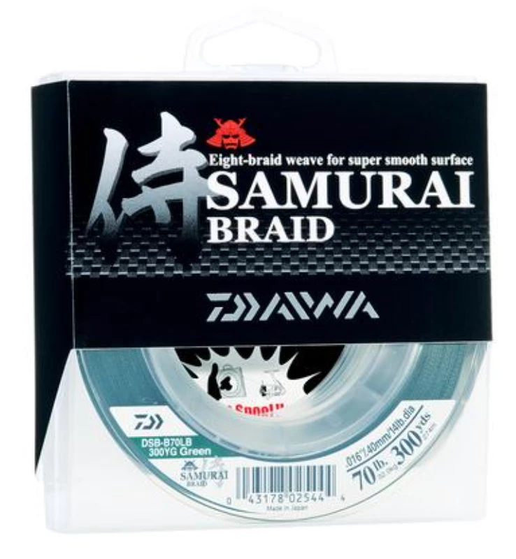 The Daiwa Samurai Braid is unlike any other braided line on the market. Sure it’s strong and sensitive, but it’s also noticeably thinner, softer, smoother and more flexible than ordinary braids. The combined strength and sensitivity of this unique eight-strand weave braid, provides super thin diameter, smoothness, softness and flexibility.