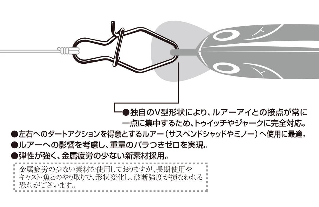 Designed to improve the performance of your lures, as well as, your efficiency on the water, the Decoy V Snap delivers a dependable connection that gives anglers the freedom to switch out baits on the fly. Built with a special V-shaped construction, the Decoy V Snap is designed to allow the bait to sit at the bottom of the V, so the angler has complete control over the motion of the bait. A great replacement for traditional split rings, the Decoy V Snap provides a performance-enhancing design that stands head and shoulders above other hardware.
