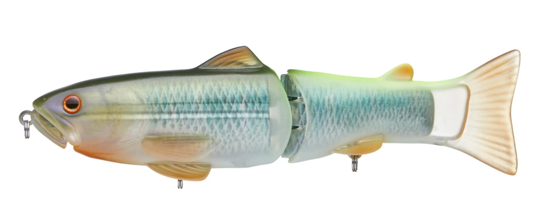 Externally, the Deps Slide Swimmer 175 Glide Bait is covered in a soft plastic skin with extremely realistic detailing, including accurate coloring, 3D eyes, as well as, lifelike scale patterns and gills. Armed with two sticky sharp treble hooks, the Deps Slide Swimmer 175 Glide Bait is the perfect glide bait for imitating small prey that any angler can fish without the need for specialized equipment.