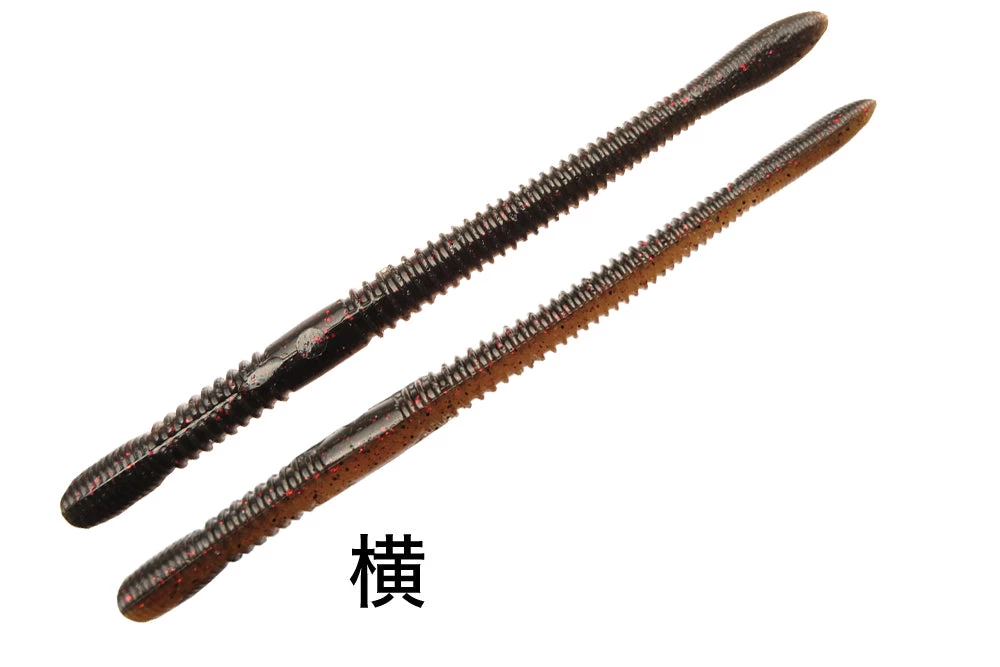 Nowadays, bass are accustomed to seeing regular size lures such as 4 inch and 5 inch. However, the large silhouette has the explosive power to pry open the mouth of such a bus. But it’s not just about being big. On the contrary, things with volume such as claw type and swimbait type can surprise the bass … In such a case, a long worm with an elongated silhouette is effective. Such a long worm is effective not only for big lakes such as Kasumi and Lake Biwa, but also for small places with high pressure and sometimes confronting visible buses. Not only is it easy to bite, but the body with a thin shaft is easy for the bass to suck in, which leads to good hooking. Long worms are not as appealing as they think.