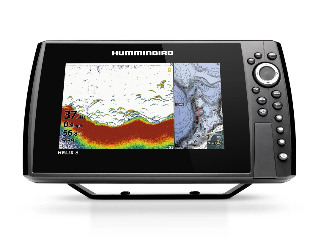 The fourth iteration of Humminbird’s hard-working Helix series, the Humminbird Helix 8 CHIRP G4 Sonar puts Humminbird’s most innovative technologies in the hands of anglers. Fitted with a crystal clear 8” display, the Humminbird provides access to Dual Spectrum CHIRP Sonar, and internal GPS with Humminbird Basemap. As with all HELIX G4N models, the Humminbrid Helix 8 CHIRP G4 Sonar includes standard features such as AutoChart Live, WiFi and NMEA 2000 in addition to Bluetooth and Ethernet networking for compatibility with the One-Boat Network family of products from Humminbrid, Minn Kota, and Cannon.