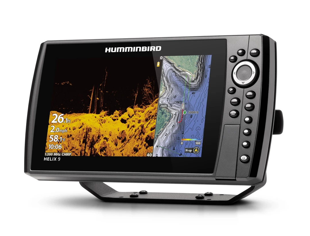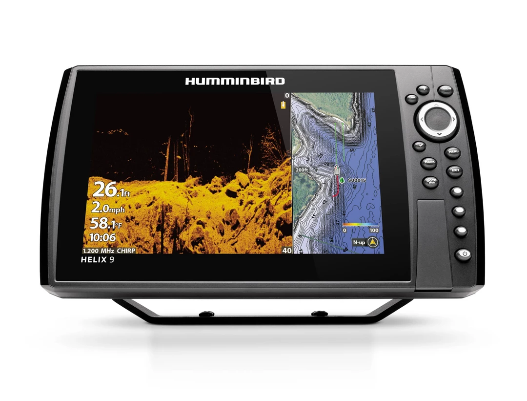 Packed with more technology than ever, the Humminbird Helix 9 CHIRP G4 Sonar features a 9” display, MEGA Down Imaging+, Dual Spectrum CHIRP Sonar and internal GPS with Humminbird Basemap. As with all of the Helix G4N models, the Humminbird Helix 9 CHIRP G4 Sonar includes standard features such as AutoChart Live, WiFi and NMEA 2000, in addition to Bluetooth and Ethernet networking for compatibility with the One-Boat Network family of products from Humminbird, Minn Kota and Cannon.