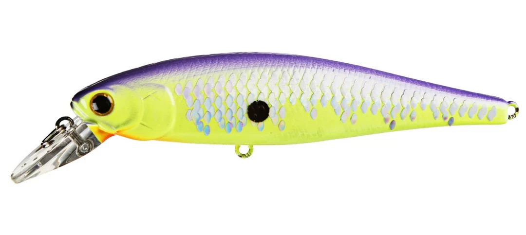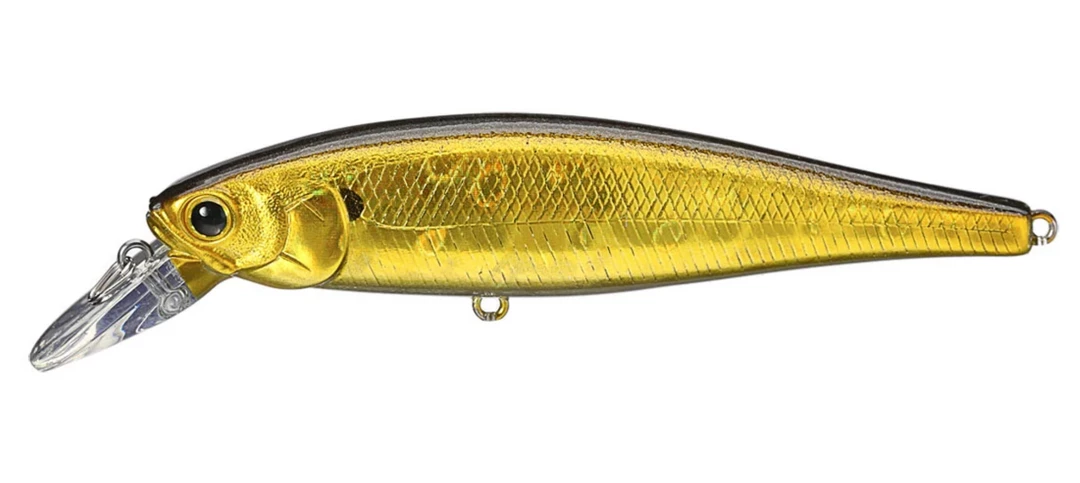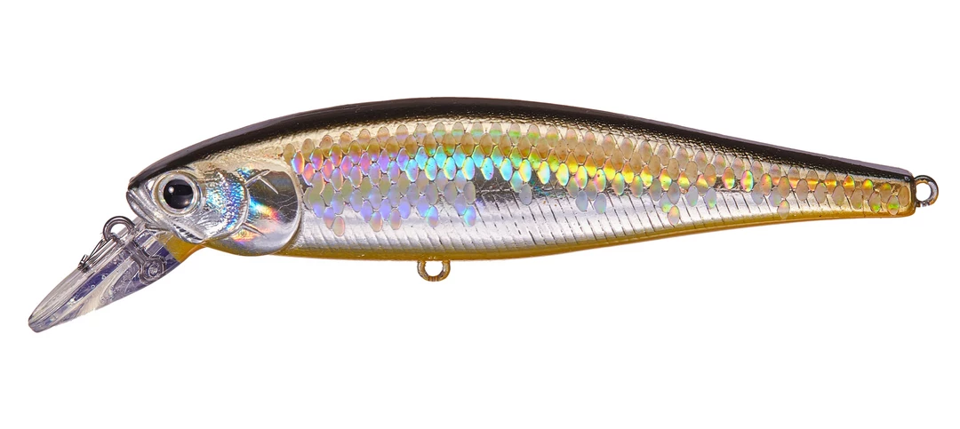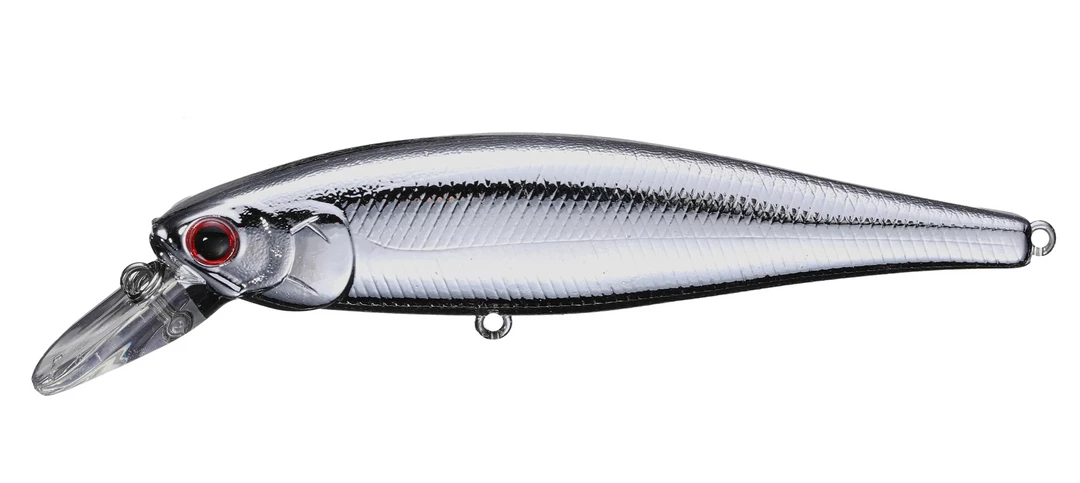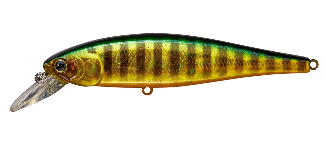 The POINTER has been designed with a very low center of gravity through the use of special brass weights. The low center of balance causes the lure to wobble and vibrate whenever the retrieving motion is stopped. The POINTER will suspend 4 -5 feet deep and will emit an intriguing bass-calling vibration, while in the suspended state. A short twitch of the fishing rod will generate the “Walk the Dog” action under the water.
