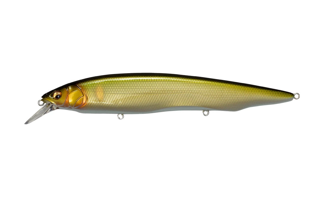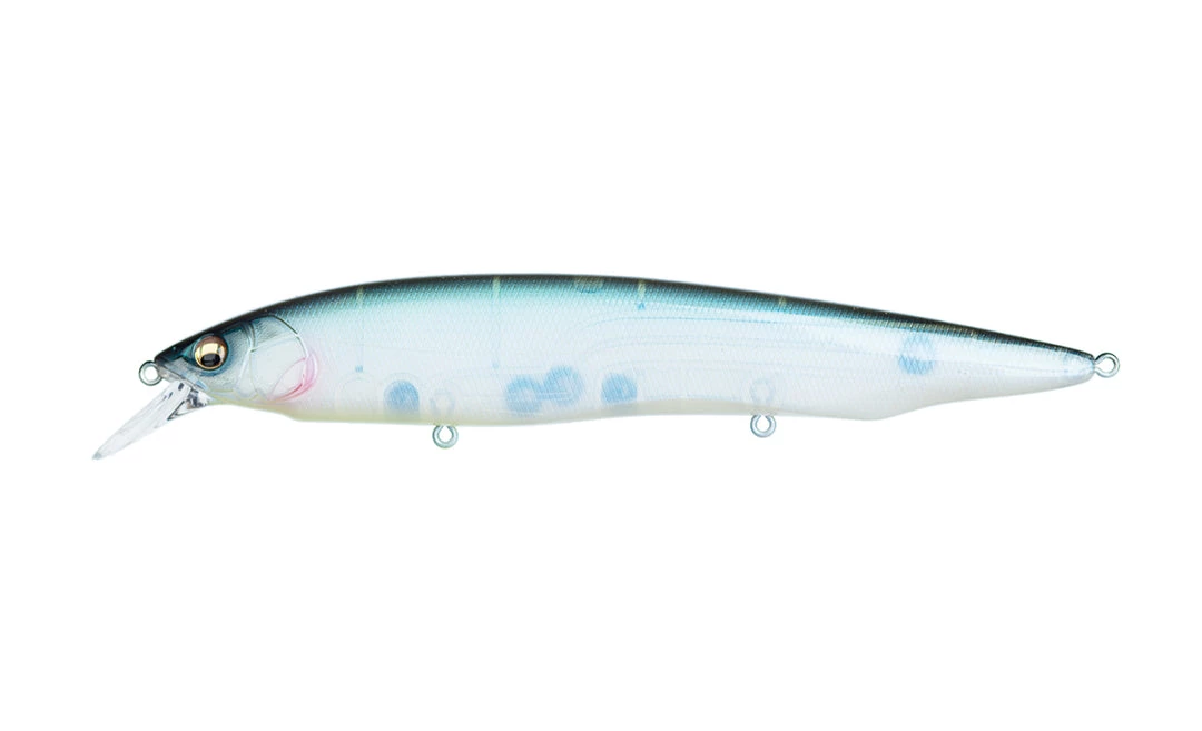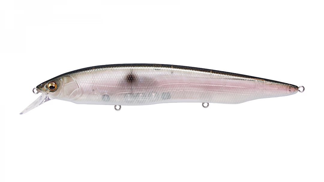 Tempting fish that are keyed-in on larger bait, the Megabass Kanata Jerkbait offers a large, attention-grabbing 6-1/3” profile with the action the match. Built with finely tuned flat sides, the Megabass Kanata Jerkbait produces a monstrous flash, whether it is burned over grass beds or worked like a traditional jerkbait.