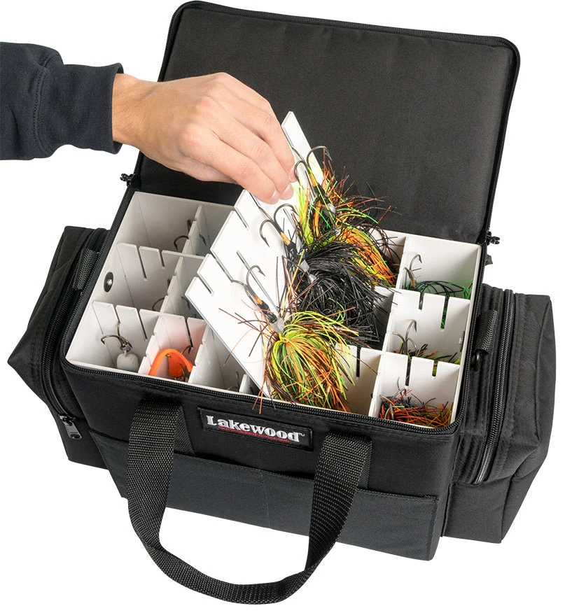 - 3 removable/adjustable and 3 solid hanging lure dividers