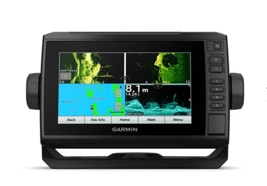 The sunlight-readable 7” touchscreen chartplotter features a quick-release bail mount, and the transducer bundle adds Ultra High-Definition scanning sonar and CHIRP traditional sonar.