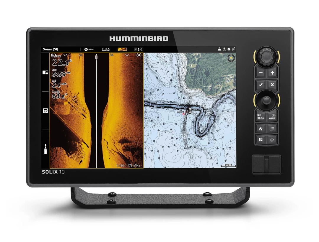 Boasting a new dual-core processor and Cross Touch interface, the Humminbird Solix 10 CHIRP G3 Sonar provides lightning fast responsiveness from either the touchscreen or keypad. Take full advantage of MEGA Side Imaging+, MEGA Down Imaging+, and Dual Spectrum CHIRP Sonar with Humminbird Solix 10 CHIRP G3 Sonar’s generous 10.1” touchscreen display. Offering customizable views and settings, the Humminbird Solix 10 CHIRP G3 Sonar allows users to see multiple technologies at once and find what you want quickly via the convenient side bar menu. Leverage the networking power of built-in WiFi and NMEA 2000 connectivity, as well as Bluetooth and Ethernet connections for compatibility with the One-Boat Network family of products from Humminbird, Minn Koa, and Cannon.