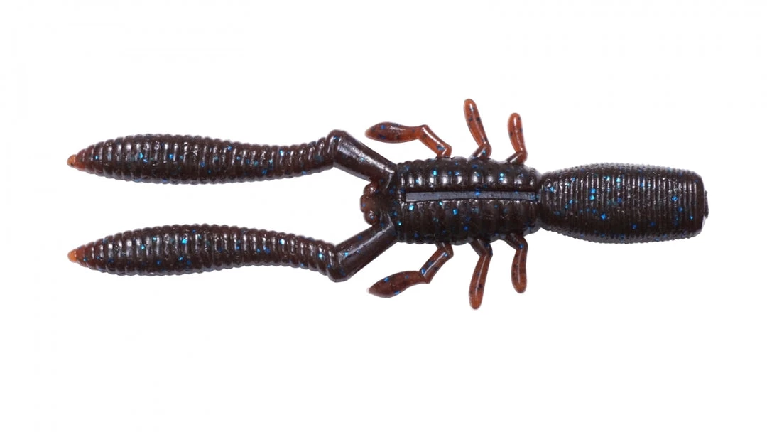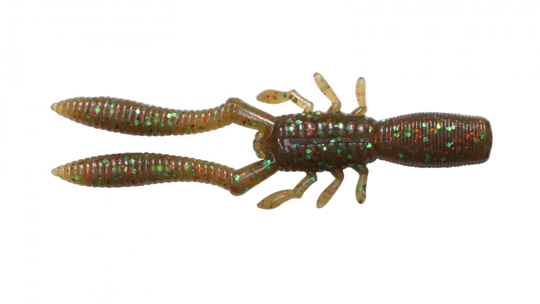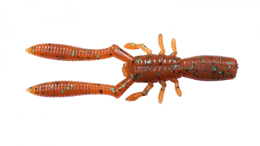 The Megabass Bottle Shrimp 4″ Craw is a hog-type worm that imitates freshwater prawns and crayfish, one of the main types of bait used around the world. When used for Texas rigs and jig trailers, the large power arms move dangerously, mimicking the defensive actions of crayfish. With bottom contact, the inertia of the weighted arms will cause a shivering action that starts at the tips of the arms and runs to the base, triggering bites. With no sinker rigs, nail rigs, and Carolina rigs, the power arms will swing left and right during the fall, creating a soft and powerful “waving” motion that invites bites. The slow and powerful “waving” motion of the power arms, coupled with vivid, lifelike leg movement, presents an incredibly realistic target that captivates predators.