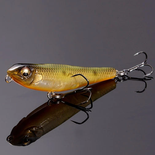 Mothra OB is an appealing color that exists only in the original Dog X and Giant Dog X. It appeared around 2002 when Megabass was challenging various painting techniques, and it is a beautiful color that combines the visibility and exquisite sheerness that are essential for topwater fishing. The coloring expresses moths in the Megabass style, and the name comes from a world-famous monster movie. It is a color that brings out the modern atmosphere with the pale gold pearl of the whole body while having a classic taste that combines the scale pattern shade and the parrot pattern. It is a popular color among Megabass fans because of its unique color that looks like a snake, and since there were many requests for reproduction, it was decided to reprint it as a respect color this time. By the way, OB is an abbreviation for orange berry, and there is also Mothra CB of chart berry as a sister color. It is from the appearance of these colors that the color of the berry part has come to be abbreviated, and since this flow is still continuing, it is a color that you can feel the history of Megabass. Both are colors exclusively for top water plugs, and especially Mothra OB will be a valuable lineup because there are few items that have been adopted so far.