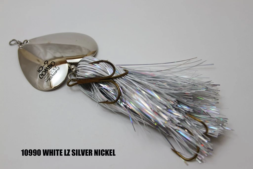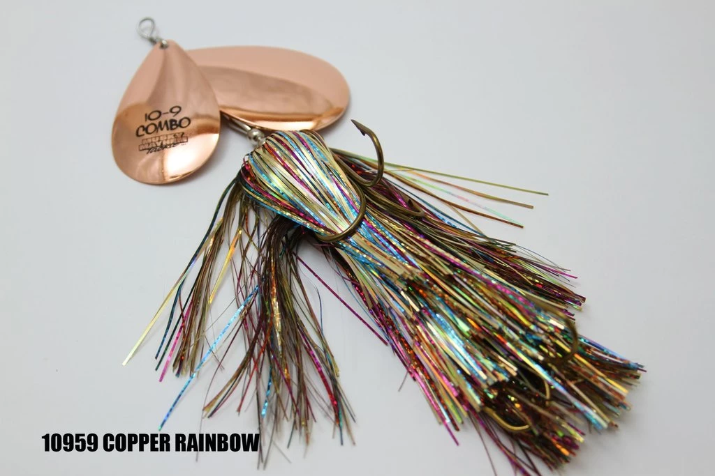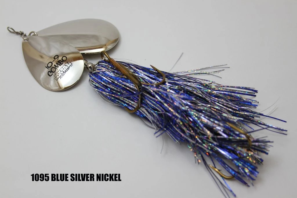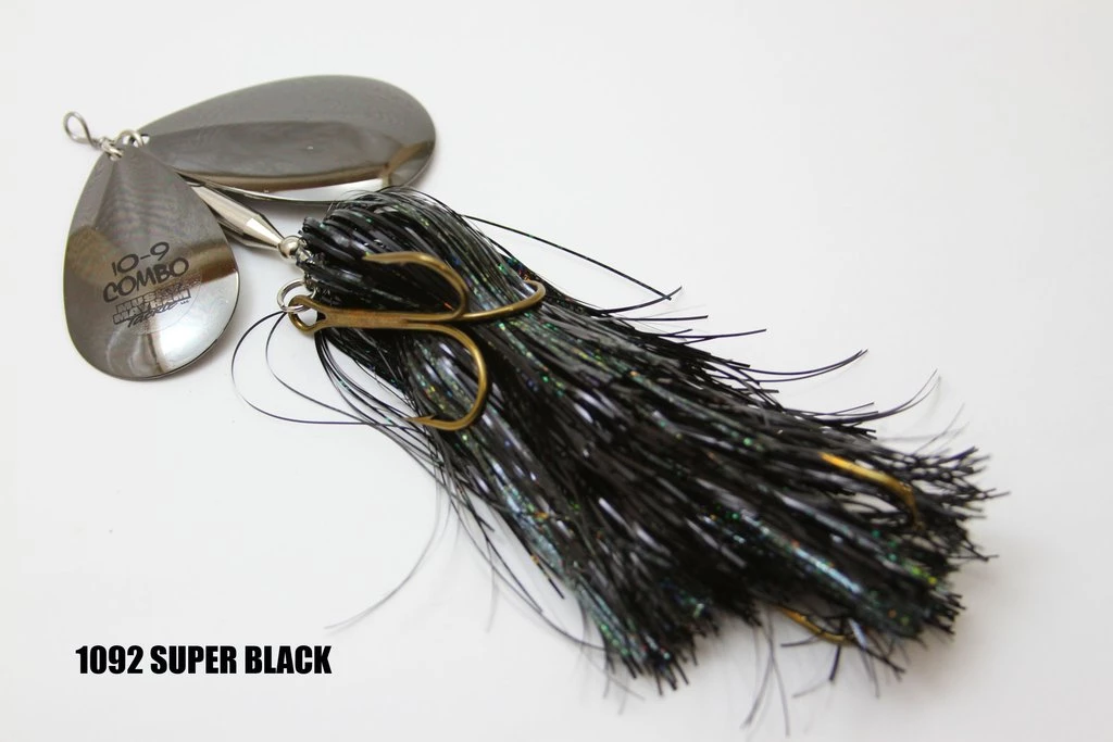 Here is the 10/9 Combo from Musky Mayhem Tackle. It’s a combination #10 blade that’s .040 thick and a #9 blade that’s .025 thick. This bait has a unique vibration and grind that muskies couldn’t resist during testing. This bait has the 3/4 oz weights standard to allow you to burn even faster.