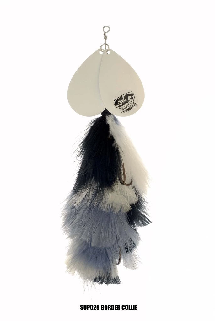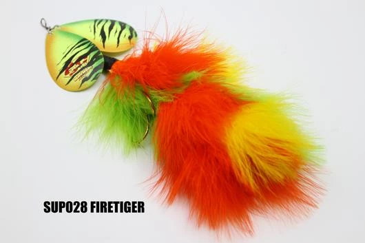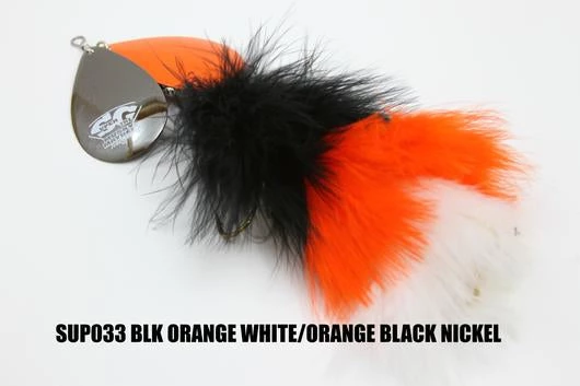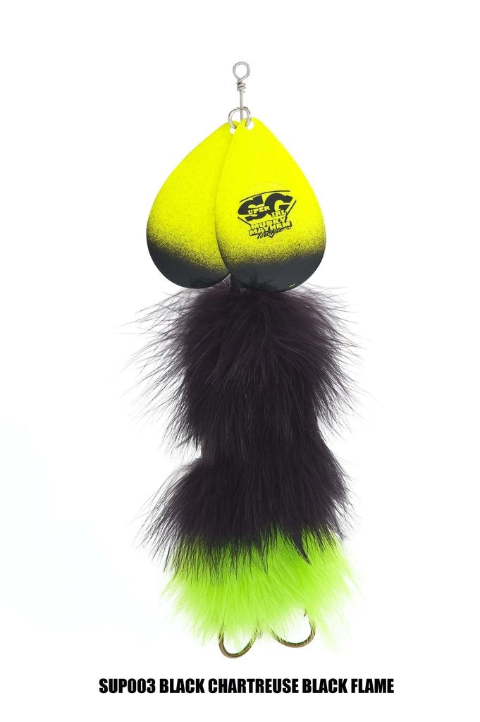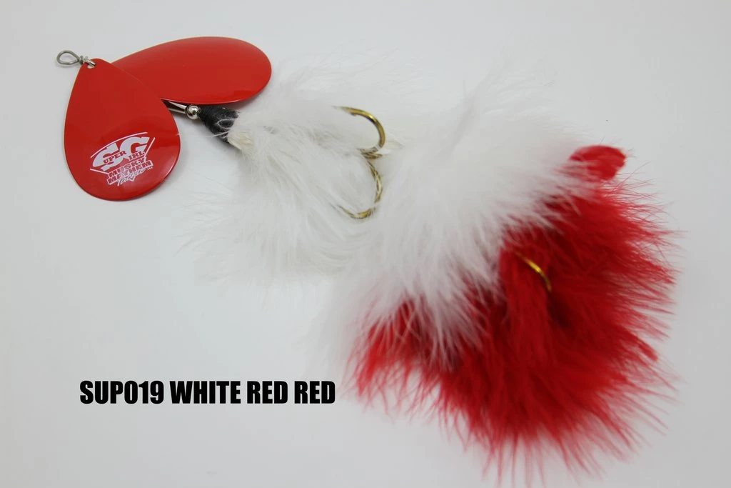 Sister to the “Double Cowgirl” this double bladed marabou is a top producer just like the rest of the family. The marabou skirting gives it lifelike action and a huge profile, making it a great baitfish simulating inline spinner. Two 7/0 Mustad hooks – 3 oz. – 10″ Long – Two #10 Magnum Blades
