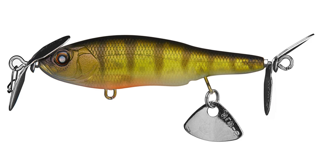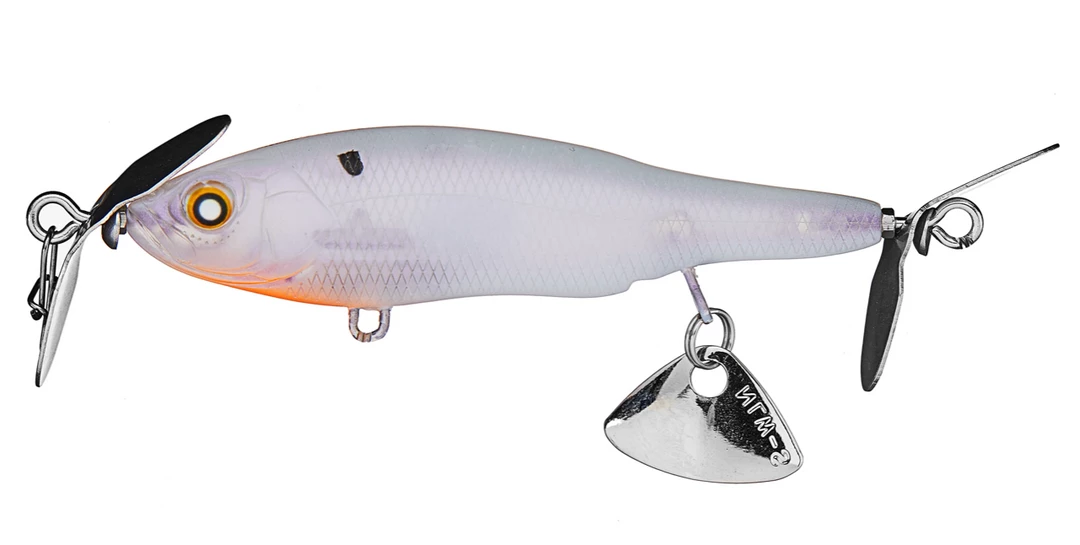 Designed by world-renowned lure designer, Hiroshi Nishine, the Nishine Lure Works Baby Abino 70S Spybait inherits its genes from the Abino 110F but gives anglers a much more compact profile and slow sink rate that makes it a deadly spybait. Featuring a dual prop system and a unique belly blade, the Nishine Lure Works Baby Abino 70S Spybait produces a side-to-side rolling action and metallic clicking noise during a steady retrieve that triggers ferocious strikes from multiple species of fish.