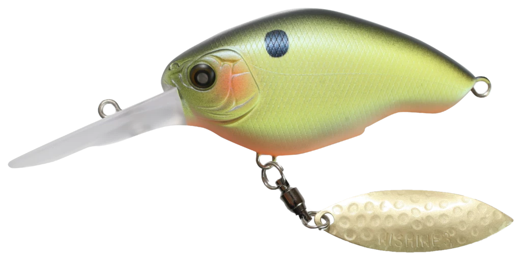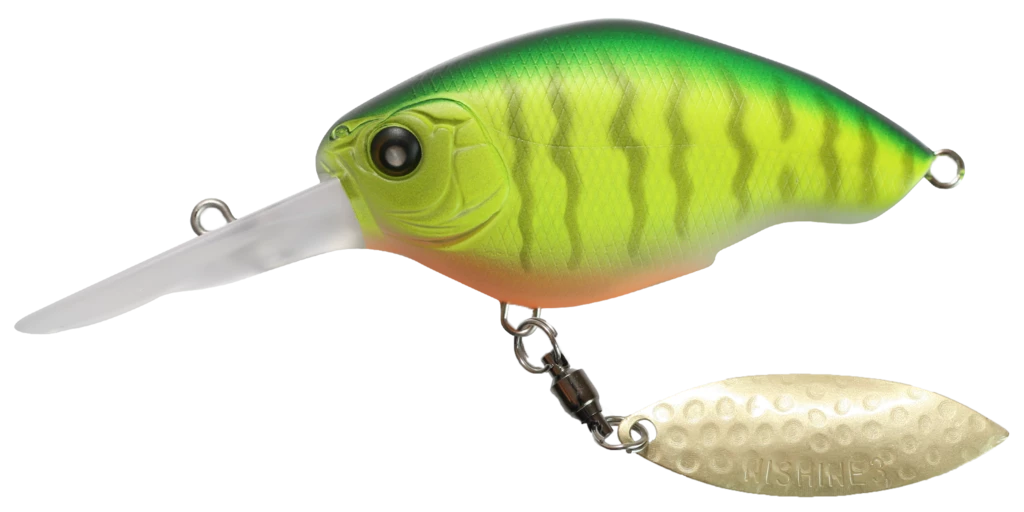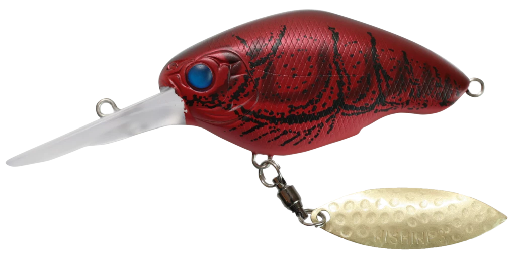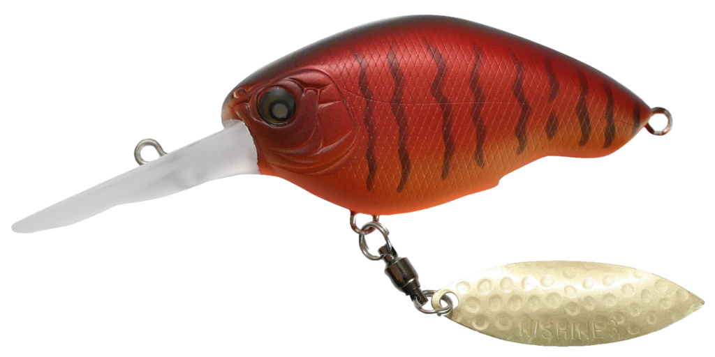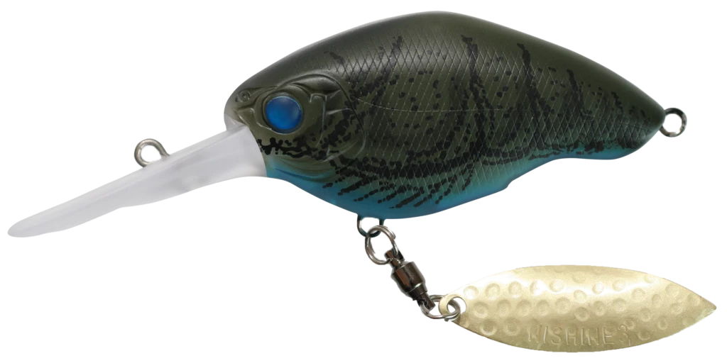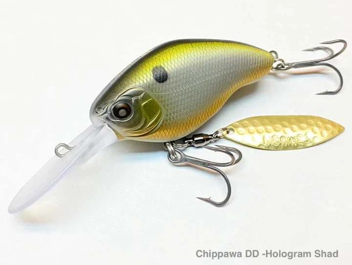 The Nishine Lure Works Chippewa DD Blade crank has a proven fish catching wobbling action. With the Nishine custom flashy blade equipped the bait generates a unique metallic sound by slightly contacting the body of the bait. With the addition of the great hunting action, the blade generates the perfect combination of flash and sound to trigger more and aggressive bites.