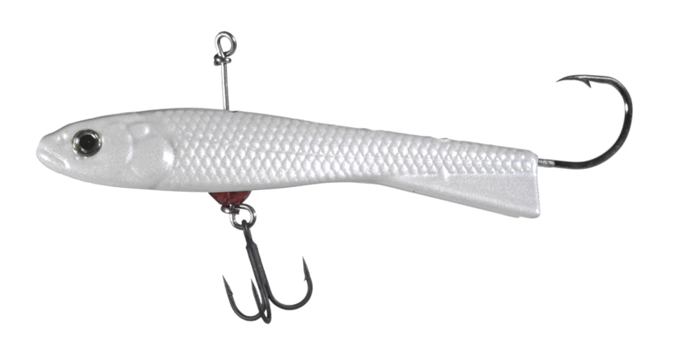 The Freedom Tackle Turnback Shad is the perfect vertical jig for open water or through the ice. The lure features a full metal body that swings freely on the metal line tie shaft. With a jerk of the rod the lure will dart off in random directions, turn around and swim back the other way. The Glass beads on the metal shaft offer visual and audio attraction to compliment the beautifully sculpted metal body.