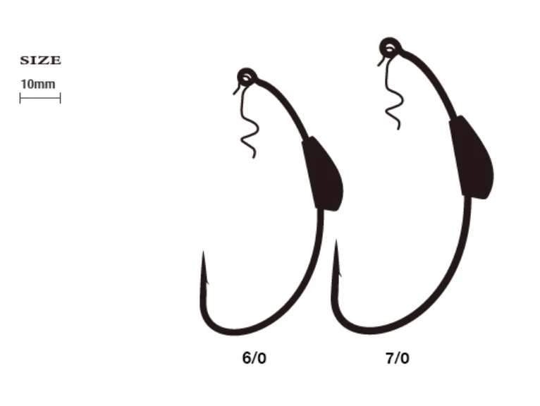 With a weight integrated onto the belly of the hook shank, the Ryugi Weighted Brutal Hook is perfect for fishing big soft plastic baits with a natural swimming presentation. The Weighted Brutal Hook’s combination of bait keeper, wide gap hook shape and small belly weight make it the perfect choice for large plastics that are best fished without the addition of a bullet sinker. The extra space in the gap accommodates the extra bulk in these types of baits and still has enough space to expose the hook point.