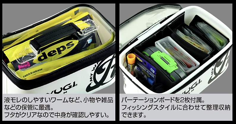 Store and organize your fishing tackle easily with the Ryugi Item Bag. With a clear top you can easily see what lies inside the bag waiting to catch you your next PB.