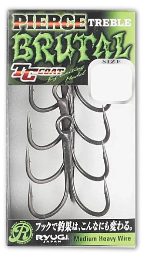 A necessary tool for the angler fishing oversized baits, the Ryugi Pierce Brutal Treble Hook was conceived to give you the best chance of connecting with your next oversized bite. Featuring a wide gap design with inward facing hook points, Ryugi’s Pierce concept has been proven to convert more bites into hookups. Made from a wear-resistant cyber metal, these trebles boast a medium-heavy wire construction that will retain its sharpness for long periods of time. The Ryugi Pierce Treble Brutal Hooks also feature a downsized barb and proprietary Teflon coating that maximizes hook penetration by making the surface of the hooks incredibly slick.