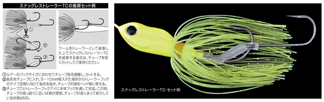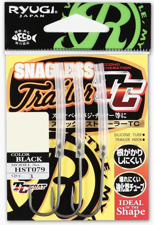 Delivering Japanese made quality and an innovative design, the Ryugi Snagless Trailer TC Hook sets the new standard for trailer hook performance. Utilizing a totally new mounting method, the Ryugi Snagless Trailer TC Hook features a silicone tube system that keeps the trailer hook higher on the shank of the spinnerbait hook, which keeps it inline with the blades to improve weedlessness and increase hook setting potential. It is also covered with a TC slick grey coating that helps camouflage the hook and increase hook penetration. Available in multiple sizes to suit any spinnerbait, the Ryugi Snagless Trailer TC Hook will increase the performance of your spinnerbaits and help you catch more of those short striking fish.