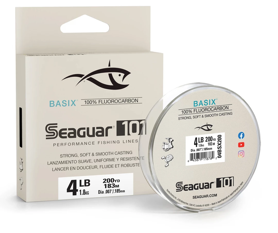 Offering great versatility and castability in a fluorocarbon platform, the Seaguar Basix 100% Fluorocarbon Line gives you all the benefits of a quality fluorocarbon line without the high price tag. Constructed to be extremely flexible, the Basix Line casts like a dream for dramatically increased distance while simultaneously decreasing backlashes and casting noise. It is made with 100% Seaguar fluoro resins to ensure it stands up to the highest standards of quality and consistency. It slips into the water with virtually invisible performance to grant anglers a covert approach to finicky and pressured fish alike. Boasting incredible knot and tensile strength, the Seaguar Basix 100% Fluorocarbon Line is an effective and economic way to present your favorite jigs, rigs, lures, and anything else you can throw at a bass.
