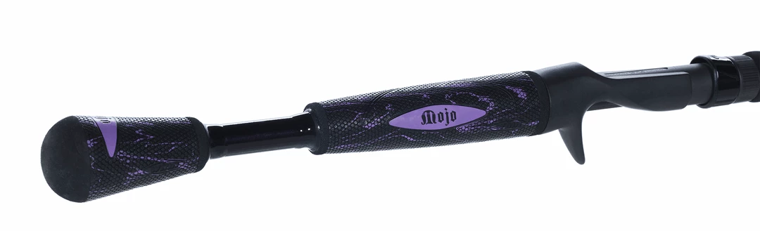 - Fuji® DPS reel seat with black hoods on spinning models.