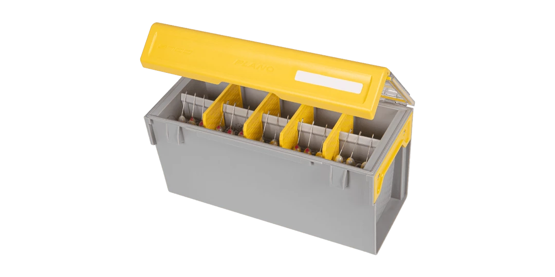 Utilizing a tall construction that holds almost any wireframe bait, the Plano EDGE Master Spinnerbait Box can be used on its own with one open compartment, or combined with the four pre-cut dividers to create up to five separate compartments. Finished with side-mounted handles for easy carrying and heavy-duty steel pin hinges for increased durability, the Plano EDGE Master Spinnerbait Box is the most effective spinnerbait and buzzbait storage system ever created.