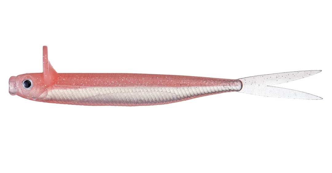 Poured with a low-density soft plastic material, the clear colors and back of the Deps Frilled Shad are made with 0% salt content while the ventral or belly side contains only 10% salt content. The fan-shaped lip above the head acts as a brake to slow its movement through the water and allow anglers to use a steady retrieve to spontaneously generate the trembling side-to-side rolling action. Perfect when rigged weightless or paired with a lightly weighted jig head, the Deps Frilled Shad remains high in the water column to make it exceptionally effective when fishing submerged rocks, grass, or specific targets.