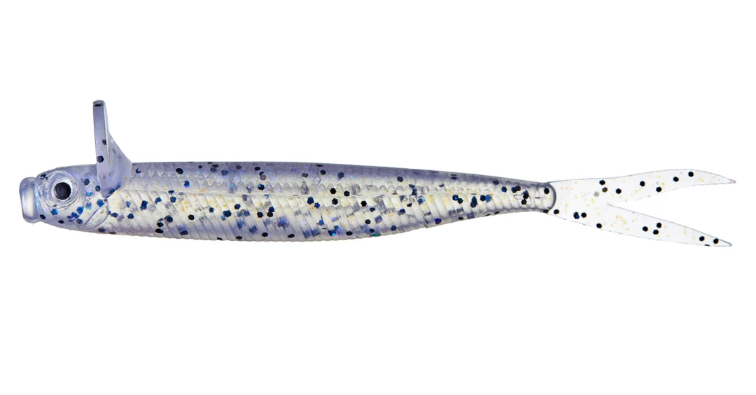 Featuring an extremely natural and streamlined baitfish profile, the Deps Frilled Shad uses a pronounced collared construction to produce a shivering swimming action and twisted body roll. Ideal for clear water or highly pressured situations, the Frilled Shad accurately mimics a wide range of baitfish with its real 3D eyes, molded gill rakers and ribbing, and ultra-realistic body shape.
