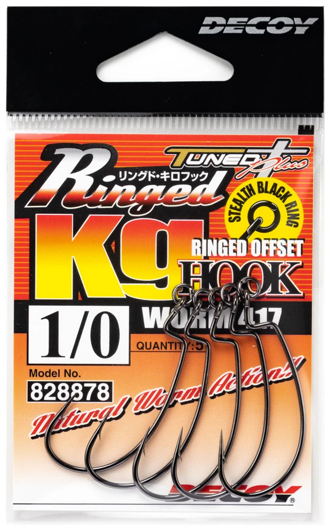 Based on the absolutely reliable offset hook “Kg hook”, a high-strength ring is attached. By connecting the line to the ring, the degree of freedom of the hook is increased, and the action up and down is given unprecedented suppleness. The bottom fall action, mainly craw-type lures, and especially the compatibility with Texas rigs are outstanding!