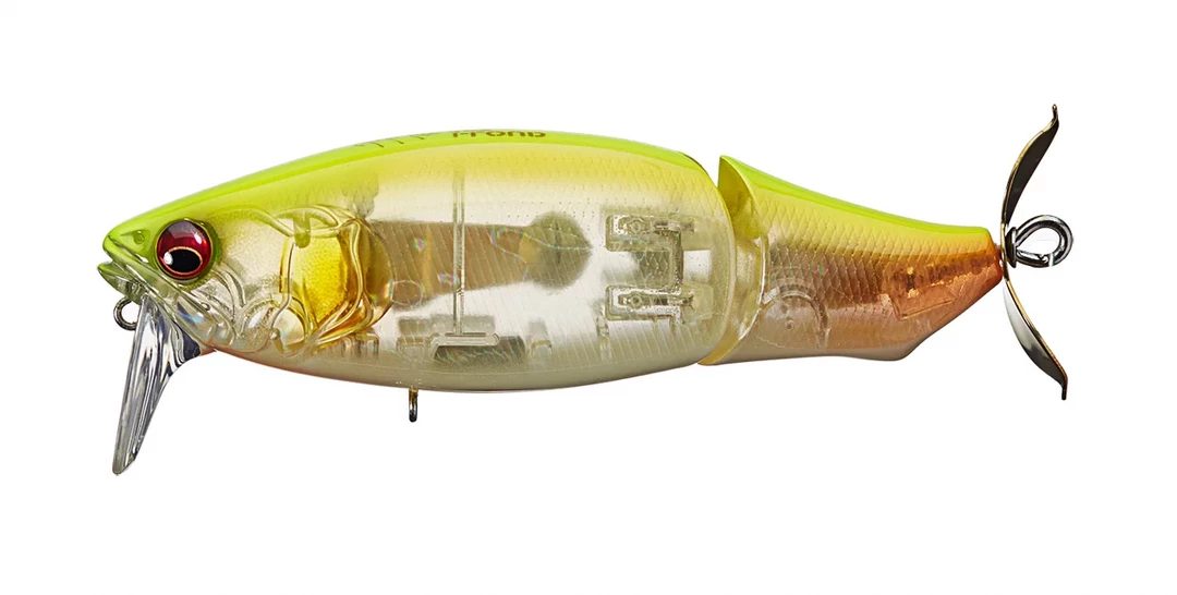 Showcasing Megabass’ patent-pending Rudder Action Balancer system, the Megabass I-Loud Propbait delivers devastating topwater action that lives up to its name. Designed by ITO Engineering, the Megabass I-Loud Propbait emits a resounding “knock” as it throws its weight from side-to-side, creating a strong sonic presence and helping to power the action of its jointed body.