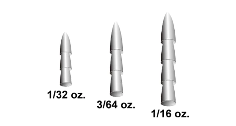 - Weight: 1/32oz, 3/64oz, 1/16oz