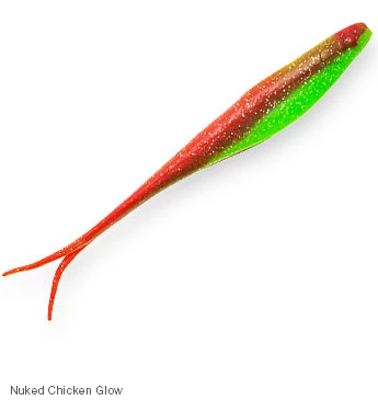A super-lifelike, salt-impregnated soft jerkbait with a lively, split-tail design that perfectly emulates erratic baitfish action, Jerk ShadZ can be rigged weightless to achieve a slow, flutter presentation, or bottom bounced on a weighted hook or jighead. The 5″ Jerk ShadZ is ideal for popular inshore targets like redfish, seatrout, flounder, and snook, while freshwater bass anglers have found it to be effective as both a surface twitchbait for largemouth and a drop-shot bait for outsized smallmouth. An upsized version of its 5″ little brother, the 7″ Jerk ShadZ is a deadly search and reaction bait for stripers, bull reds, snook, tarpon, cobia, pike, and musky. Both size Jerk ShadZ are also incredibly effective when pinned to a heavy jighead and jigged vertically for grouper, snapper, amberjack, and yellowtail, where they not only trigger violent strikes but also hold up to constant abuse from bait-stealers like no other scented soft plastics on the market!
